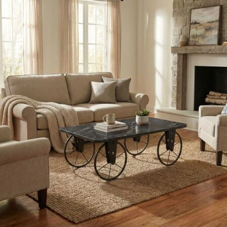 Τραπεζάκι σαλονιού Abdera χρώμα μαύρο εφέ μαρμάρου 110x60x42εκ.