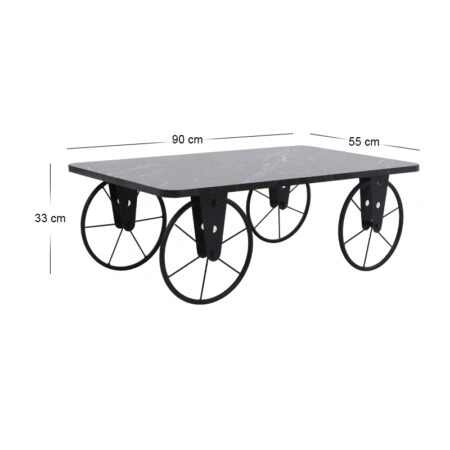 Τραπεζάκι σαλονιού Roy με σερβιτόρο από μελαμίνη χρώμα μαύρο – εφέ μαρμάρου 121x69x40εκ.