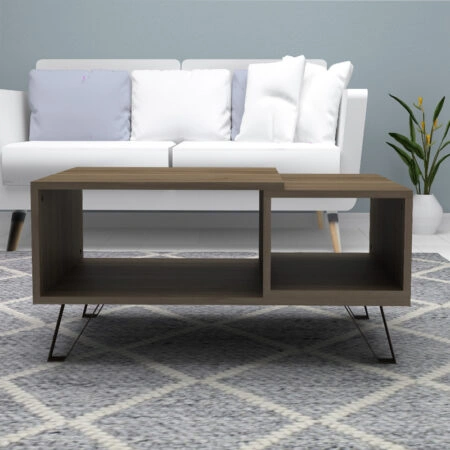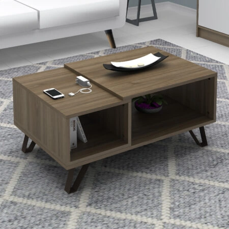 Τραπεζάκι σαλονιού Slide από μελαμίνη χρώμα καρυδί 110x65x42εκ.