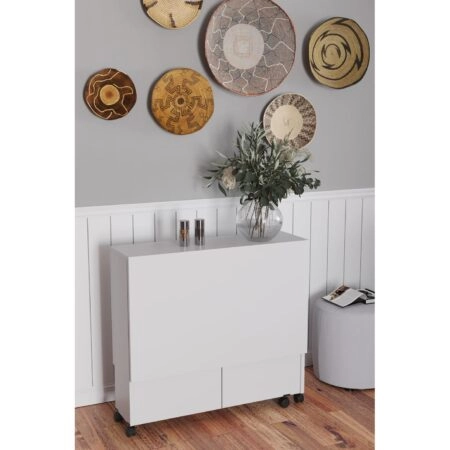 Τραπεζάκι Πτυσσόμενο Με Ροδάκια STANLEY Λευκό Μοριοσανίδα 120x80x73cm