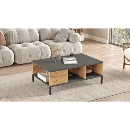 Τραπεζάκι Σαλονιού ANGEL Πεύκο/Ανθρακί Μοριοσανίδα/Μέταλλο 90x60x33.1cm