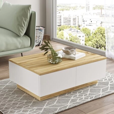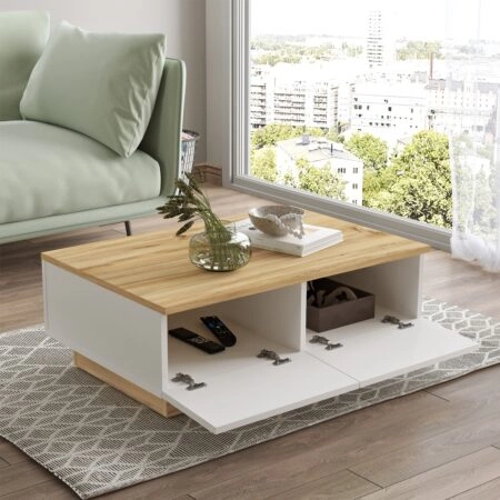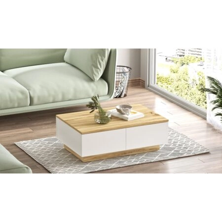 Τραπεζάκι Σαλονιού IORI Λευκό/Φυσικό MDF/Ξύλο 100x48x45cm