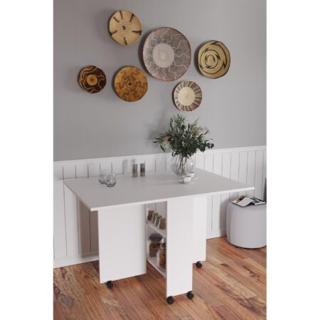 Τραπεζάκι Πτυσσόμενο Με Ροδάκια STANLEY Λευκό Μοριοσανίδα 120x80x73cm