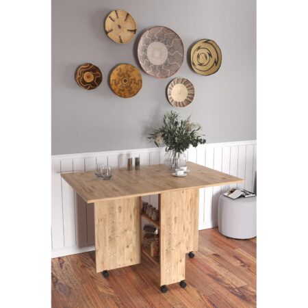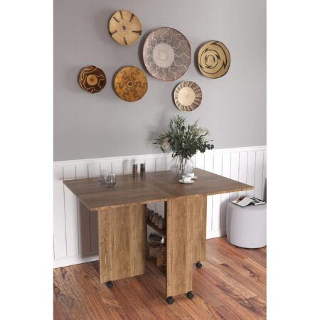 Τραπεζάκι Πτυσσόμενο Με Ροδάκια STANLEY Δρυς Μοριοσανίδα 120x80x73cm