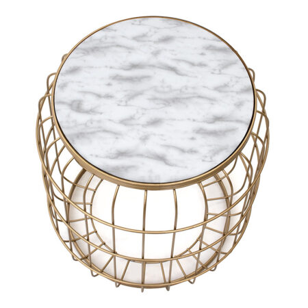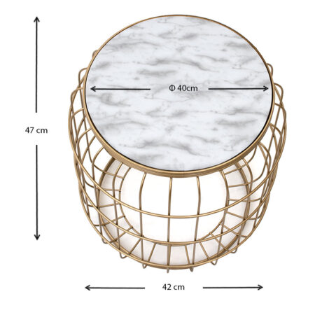 Σκαμπώ – τραπεζάκι βοηθητικό Muller μεταλλικό – Mdf χρώμα χρυσό – λευκό 35x35x47εκ.