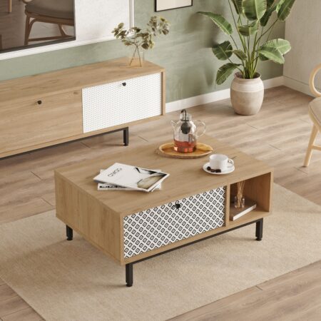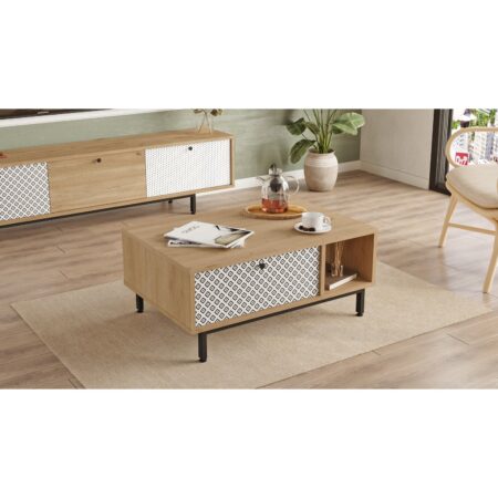Τραπεζάκι σαλονιού Honey Megapap μελαμίνης χρώμα φυσικό οξιάς – λευκό 105x60x40εκ.