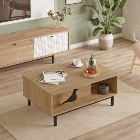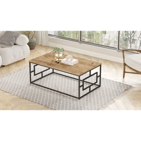 Τραπεζάκι Σαλονιού ALMADA Φυσικό/Μαύρο Μοριοσανίδα/Μέταλλο 120x60x45cm