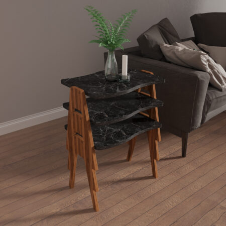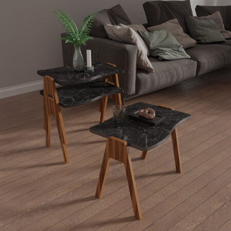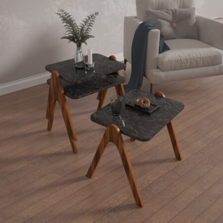 Τραπεζάκι Σαλονιού ArteLibre ROWDEN Μαύρο Μάρμαρο Μοριοσανίδα/Μέταλλο 60x60x50/80x47x45cm Σετ 2Τμχ