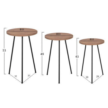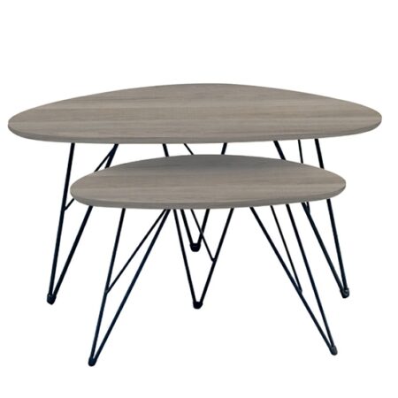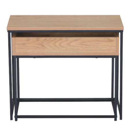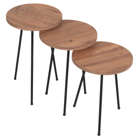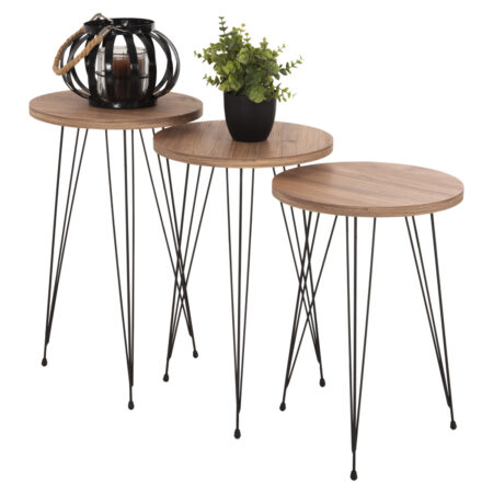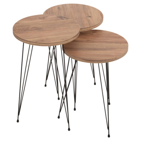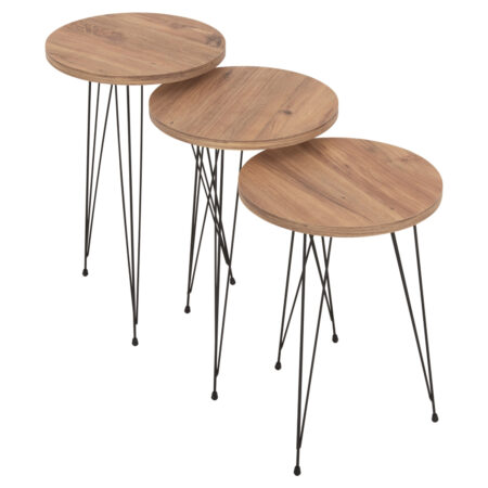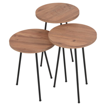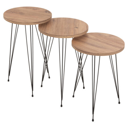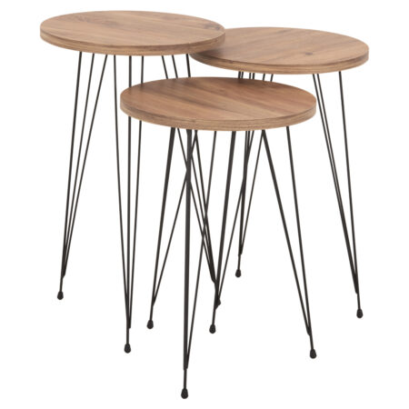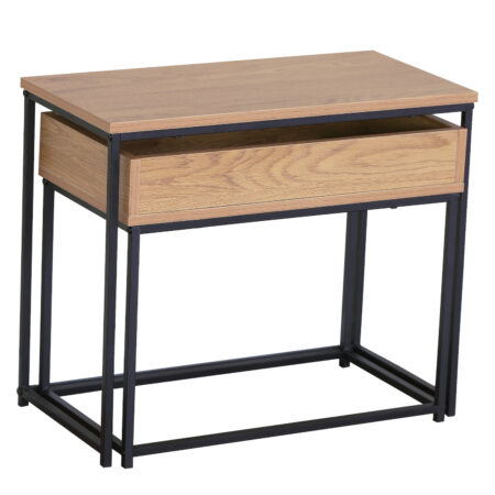 Τραπεζάκι Σαλονιού ArteLibre BELLINGTON Δρυς/Μαύρο Μοριοσανίδα/Μέταλλο 60x30x50/55x30x45cm Σετ 2Τμχ