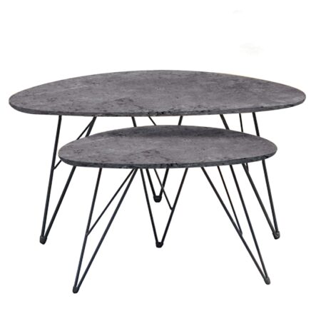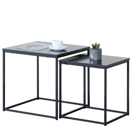 Τραπεζάκι Σαλονιού ArteLibre SOMERTON Μαύρο Μάρμαρο Μοριοσανίδα/Μέταλλο 40x40x50/35x35x45cm Σετ 2Τμχ
