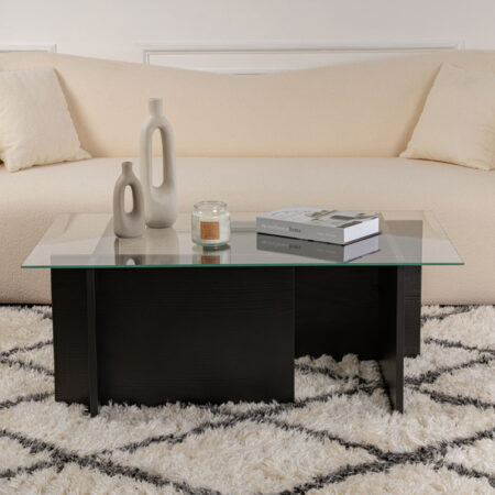 Τραπεζάκι σαλονιού Vetrino Megapap γυάλινο χρώμα μαύρο 105x65x40εκ.