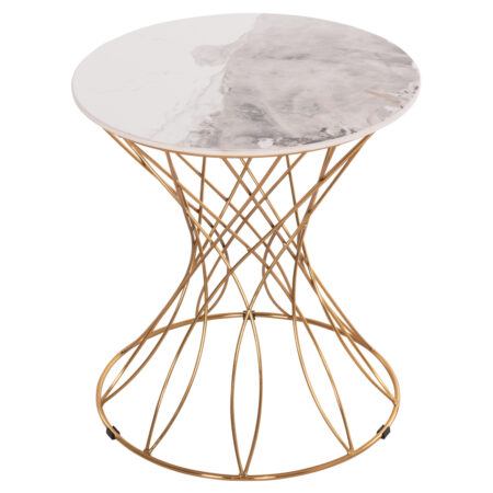 Βοηθητικό τραπεζάκι Boundar Inart γκρι-χρυσό μέταλλο-γυαλί Φ50×49εκ