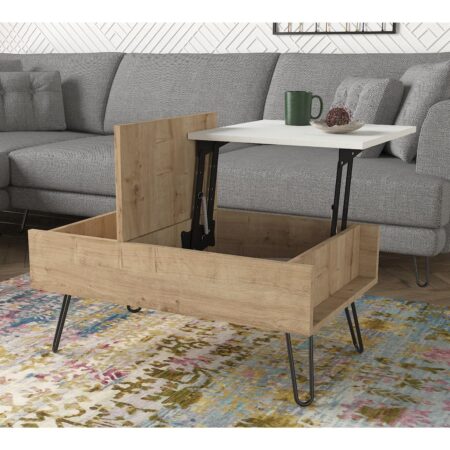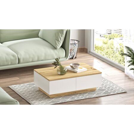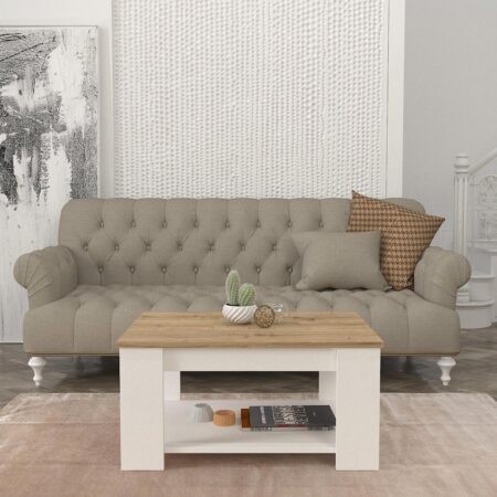 Τραπεζάκι Σαλονιού ALDEN Λευκό/Φυσικό Μοριοσανίδα/Μελαμίνη 90x60x42cm