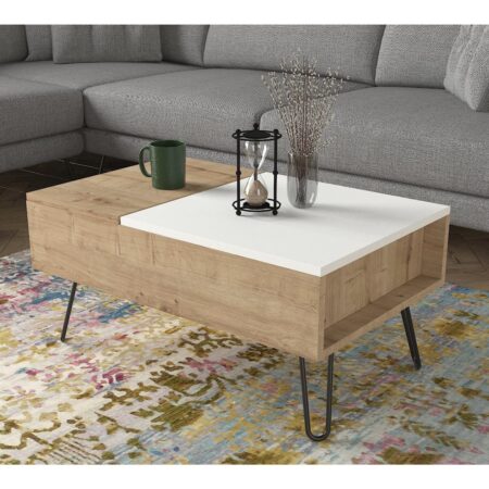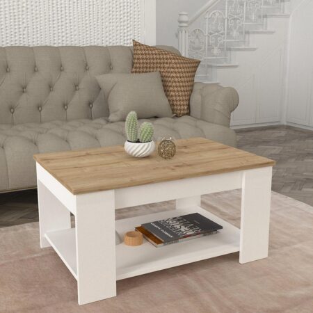 Τραπεζάκι Σαλονιού IORI Λευκό/Φυσικό MDF/Ξύλο 100x48x45cm