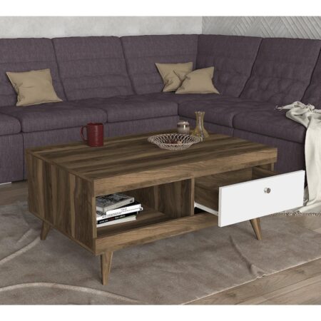 Τραπεζάκι Σαλονιού ARSIDA Λευκό/Καρυδί Μοριοσανίδα/Μελαμίνη 90x60x42cm
