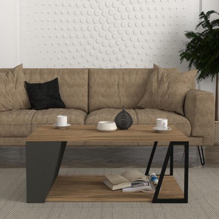 Τραπεζάκι Σαλονιού SADE Καρυδί Μοριοσανίδα/Μέταλλο 41x90x40cm