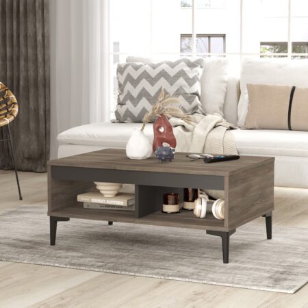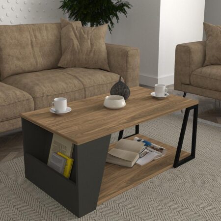 Τραπεζάκι Σαλονιού ANGEL Πεύκο/Ανθρακί Μοριοσανίδα/Μέταλλο 90x60x33.1cm