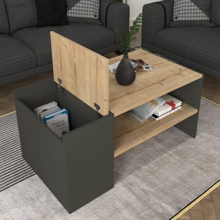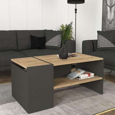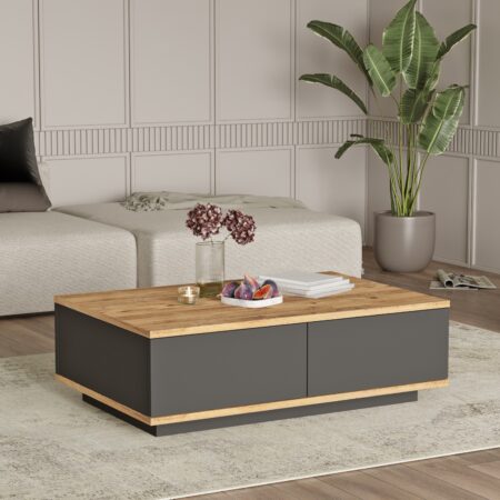 Τραπεζάκι Σαλονιού TINOS Φυσικό/Ανθρακί Μοριοσανίδα/Μελαμίνη 100x55x36cm