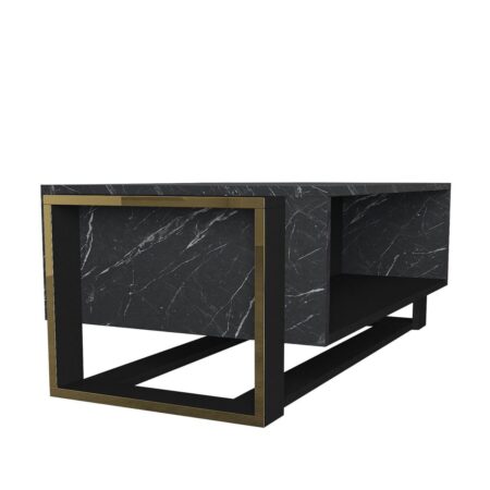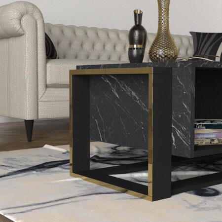 Τραπεζάκι Σαλονιού SEYE Μαύρο/Όψη Μαρμάρου Μοριοσανίδα/Μέταλλο 45x90x40cm