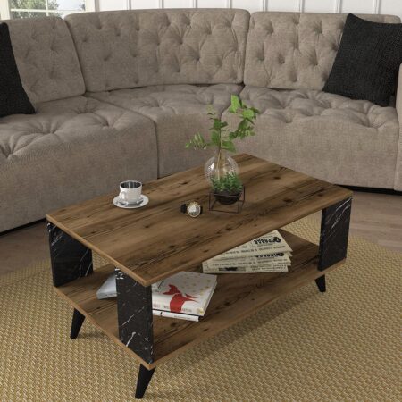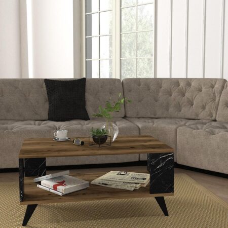 Τραπεζάκι Σαλονιού BICKEL Καρυδί/Μαύρο Μοριοσανίδα/Μελαμίνη 90x54x42cm