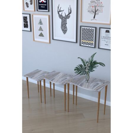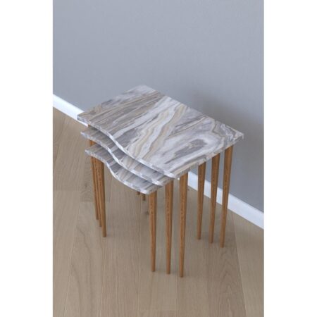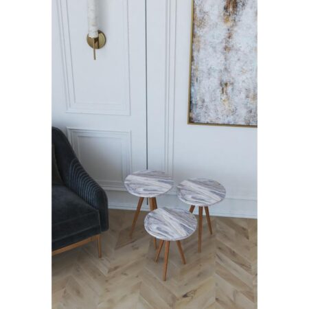 Τραπεζάκι Βοηθητικό NURU Γκρι/Όψη Μαρμάρου Μοριοσανίδα/Ξύλο 53x35x52/44x35x47/35x35x42cm Σετ 3Τμχ