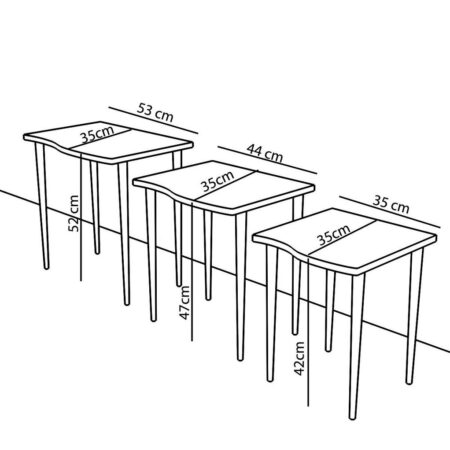 Τραπεζάκι Βοηθητικό ABIDEMI Καρυδί Μοριοσανίδα/Ξύλο 35×52/35×47/35x42cm Σετ 3Τμχ