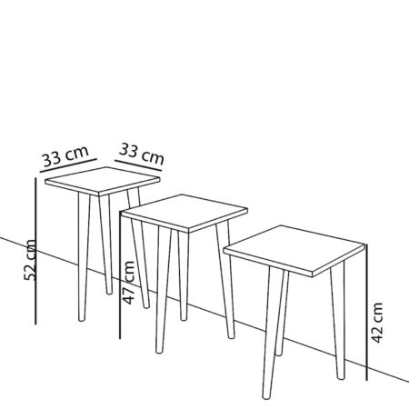 Τραπεζάκι Βοηθητικό ZURI Καρυδί Μοριοσανίδα/Ξύλο 33x33x52/33x33x47/33x33x42cm Σετ 3Τμχ