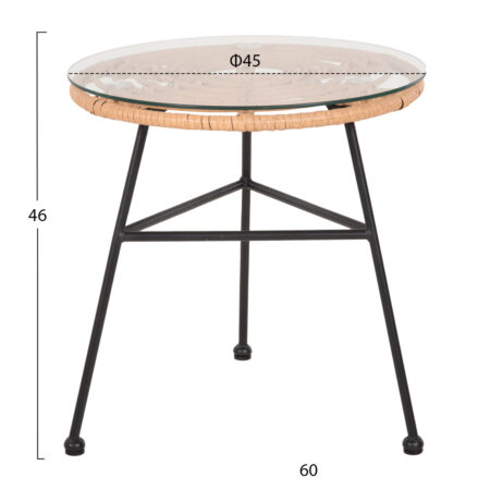 Τραπεζάκι Κήπου ALBIUS Φυσικό Rattan/Μέταλλο/Γυαλί Φ50x35cm