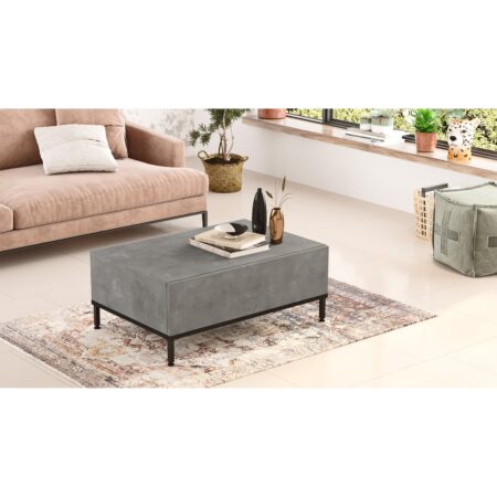 Τραπεζάκι Σαλονιού ARKLEY Γκρι Με Εφέ Τσιμέντο Μοριοσανίδα/Μέταλλο 100×59.7×44.4cm