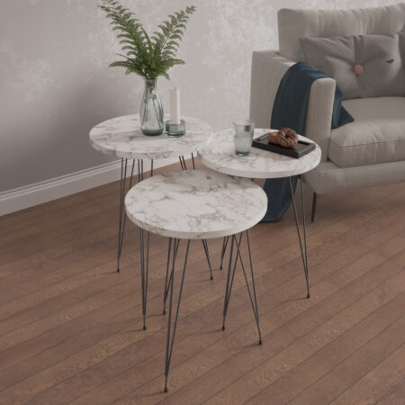 Τραπεζάκι Βοηθητικό BISI Γκρι/Όψη Μαρμάρου Μοριοσανίδα/Ξύλο 33.5×52/33.5×47/33.5x42cm Σετ 3Τμχ