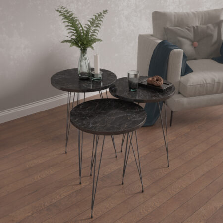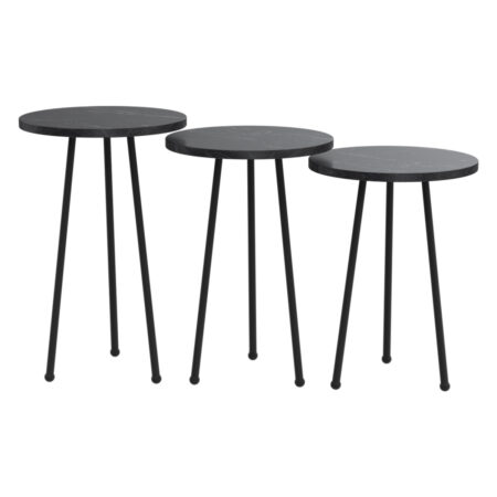Τραπεζάκι Βοηθητικό FARAJI Μαύρο/Όψη Μαρμάρου Μοριοσανίδα/Μέταλλο 35x52cm Σετ 3Τμχ