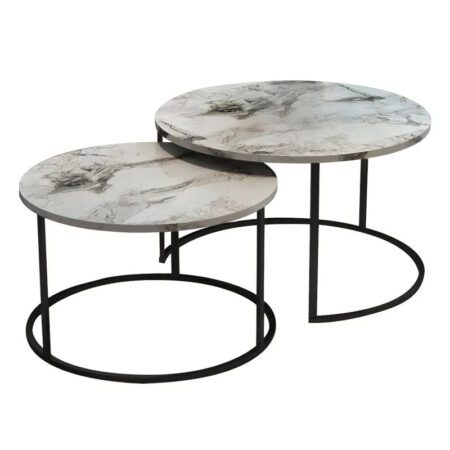 Τραπέζια σαλονιού Solme 2τεμ λευκή όψη μαρμάρου με μαύρα μεταλλικά πόδια
