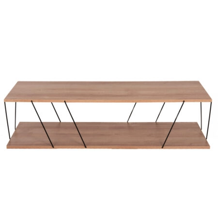 Τραπέζια σαλονιού Solme 2τεμ φυσική απόχρωση με μαύρα μεταλλικά πόδια