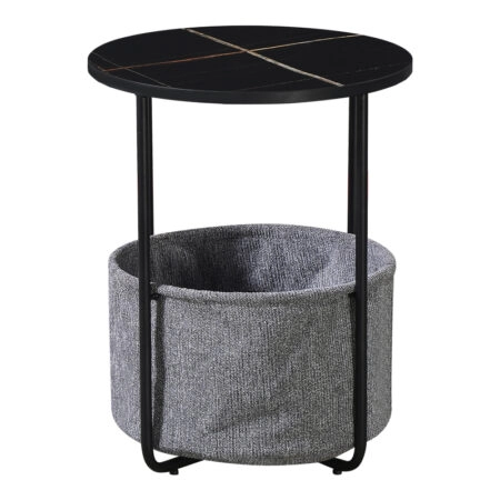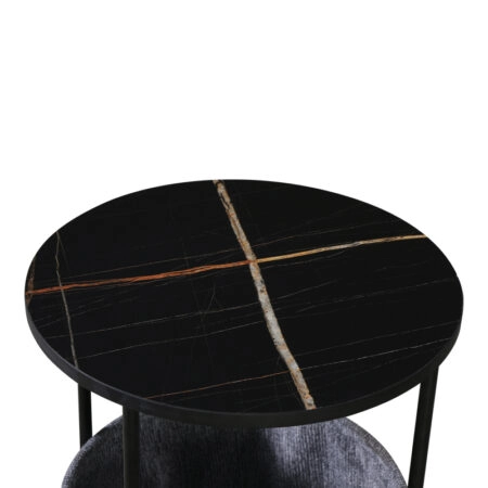 Τραπέζι σαλονιού Fabrin Inart μαύρο μαρμάρου sintered stone-μαύρο μέταλλο Φ70×40εκ