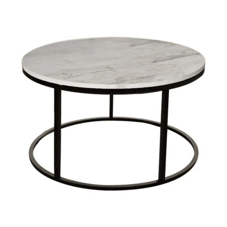 Τραπέζι σαλονιού Sikele λευκή όψη μαρμάρου και μαύρα μεταλλικά πόδια Φ60×40εκ