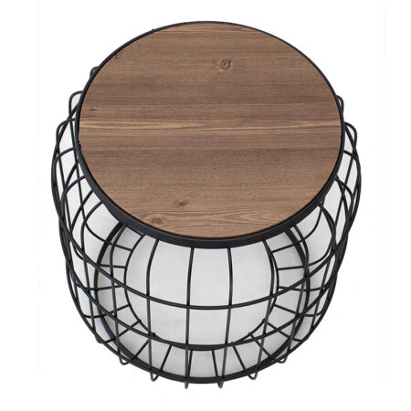 Σκαμπώ – τραπεζάκι βοηθητικό Muller μεταλλικό – Mdf χρώμα μαύρο – καρυδί 35x35x47εκ.