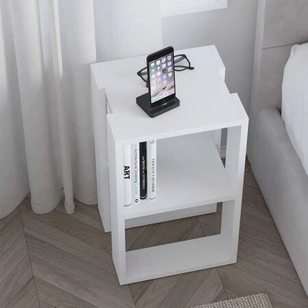 Κομοδίνο – τραπεζάκι βοηθητικό Lonie από μελαμίνη χρώμα λευκό 34x30x55εκ.