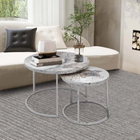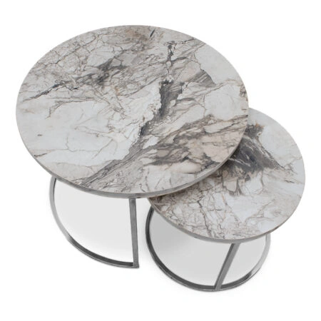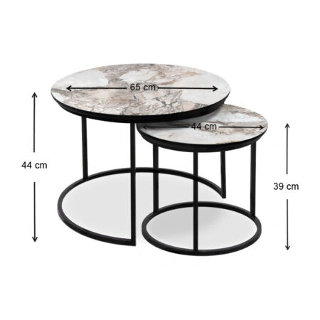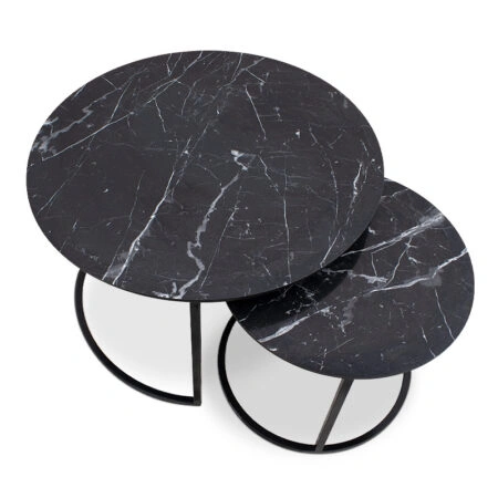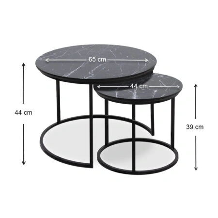 Τραπεζάκι σαλονιού σετ 2 τμχ Hilal Megapap χρώμα μαύρο εφέ μαρμάρου Ø66×49,5εκ.