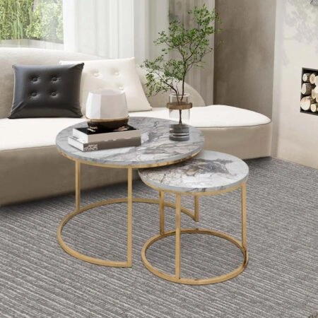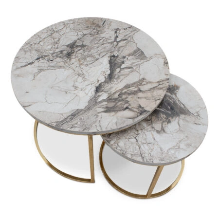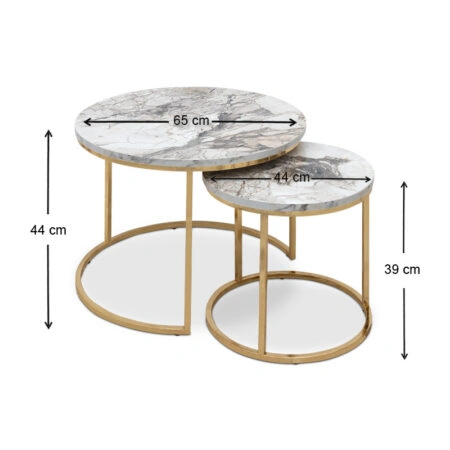 Τραπεζάκια σαλονιού Gary Mdf – μεταλλικό χρώμα μπεζ εφέ μαρμάρου 65x65x44εκ.