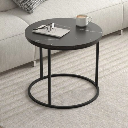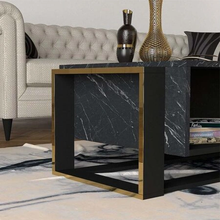 Τραπεζάκια σαλονιού Gary Mdf – μεταλλικό χρώμα μαύρο εφέ μαρμάρου 65x65x44εκ.