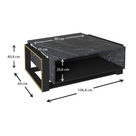 Τραπεζάκι σαλονιού Andros Megapap χρώμα μαύρο – μαύρο εφέ μαρμάρου 90x54x39,6εκ.