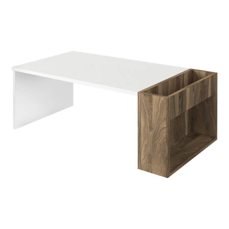 Τραπεζάκι σαλονιού Tab από μελαμίνη χρώμα λευκό – καρυδί 105x60x32εκ.