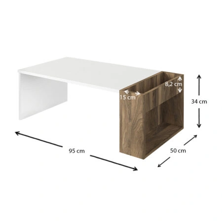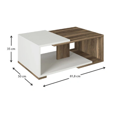 Τραπεζάκι σαλονιού Mareta από μελαμίνη χρώμα λευκό – καρυδί 81,8x50x35εκ.