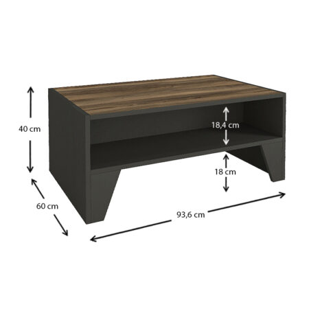 Τραπεζάκι σαλονιού Chester από μελαμίνη χρώμα ανθρακί – καρυδί 93,6x60x40εκ.