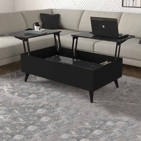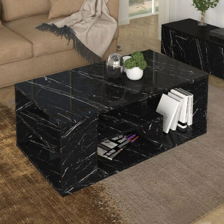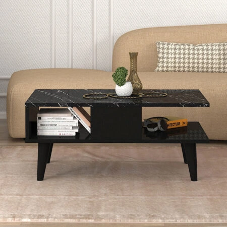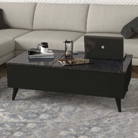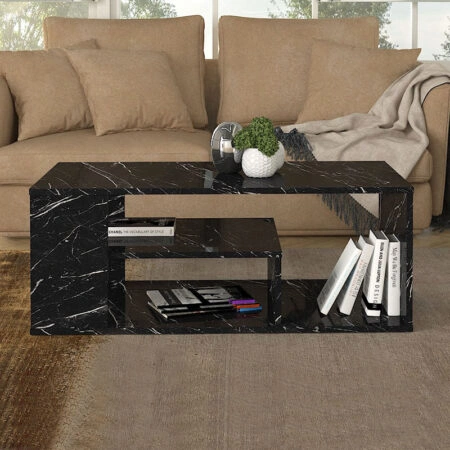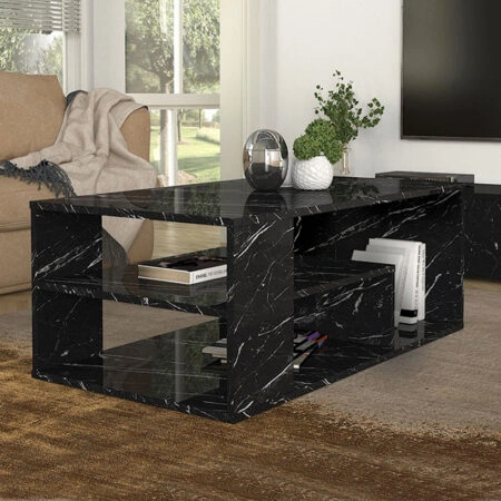 Τραπεζάκι σαλονιού Serina από μελαμίνη χρώμα μαύρο εφέ μαρμάρου 107x60x40εκ.