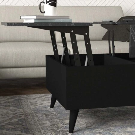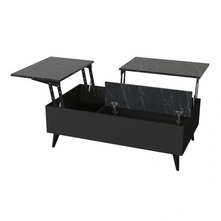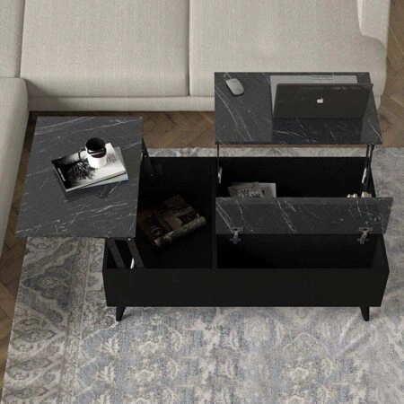 Τραπεζάκι σαλονιού Roy με σερβιτόρο από μελαμίνη χρώμα μαύρο – εφέ μαρμάρου 121x69x40εκ.