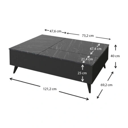 Τραπεζάκι σαλονιού Abdera χρώμα μαύρο εφέ μαρμάρου 110x60x42εκ.