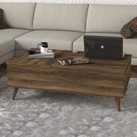 Τραπεζάκι σαλονιού Devon με σερβιτόρο από μελαμίνη χρώμα καρυδί 110x60x44,8εκ.