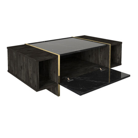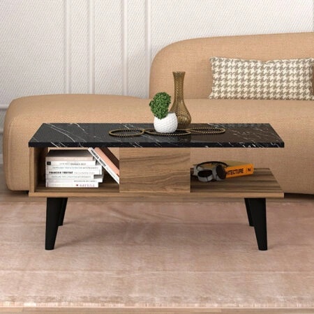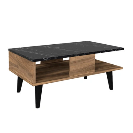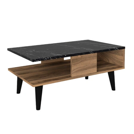 Τραπεζάκι σαλονιού Andros χρώμα καρυδί – μαύρο εφέ μαρμάρου 90x54x39,6εκ.