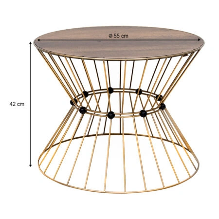 Τραπεζάκι σαλονιού Girene μεταλλικό – Mdf χρώμα χρυσό – καρυδί Ø55×42εκ.